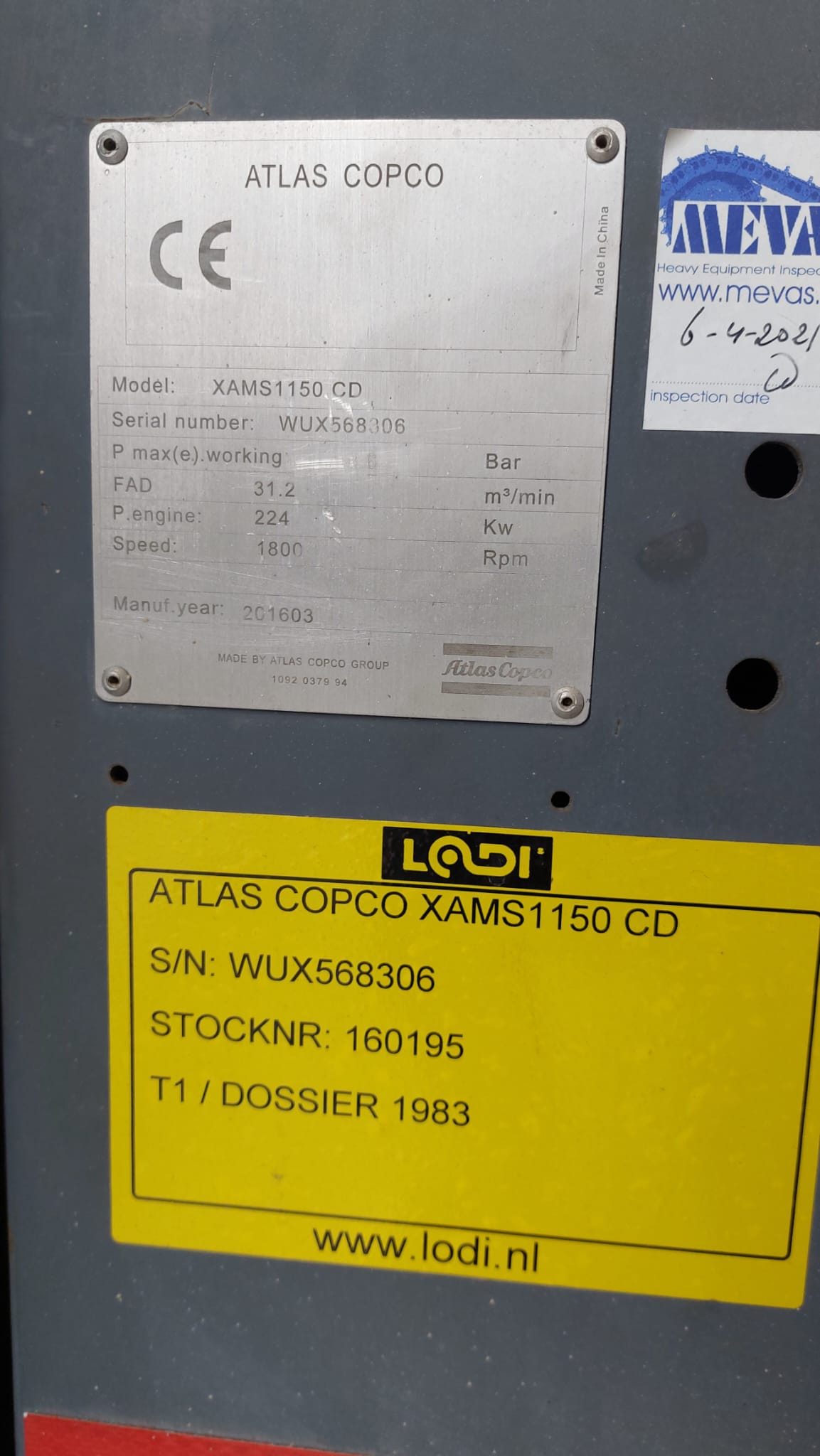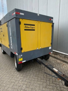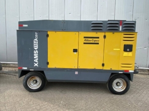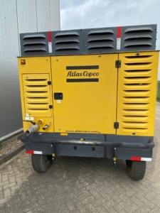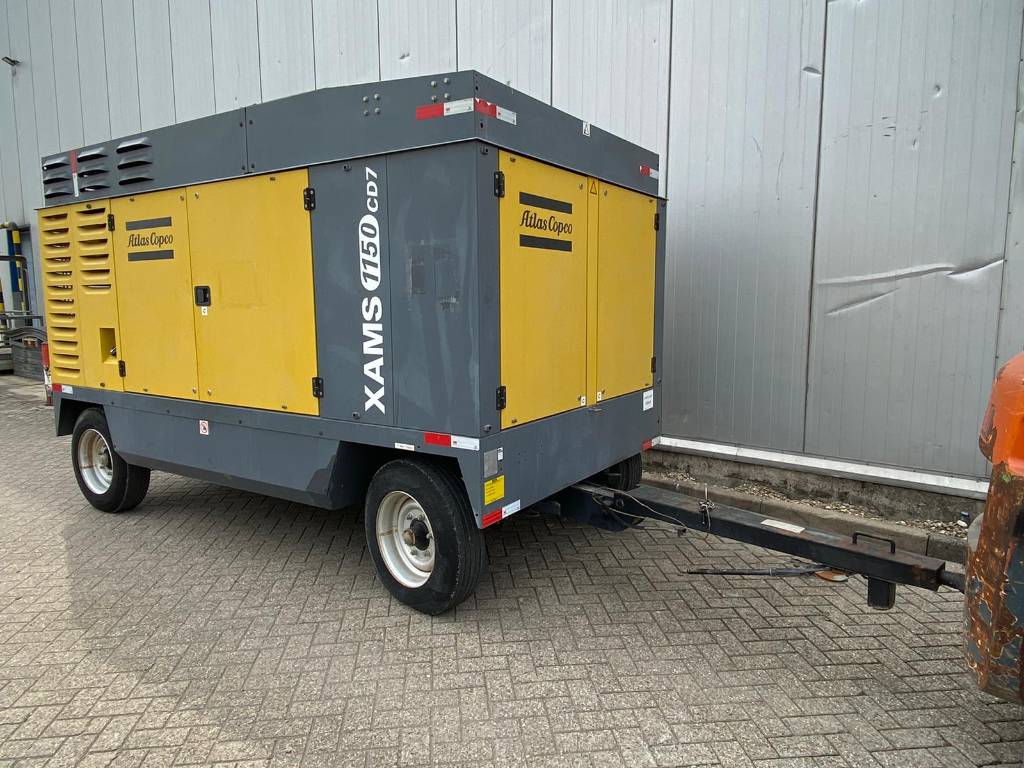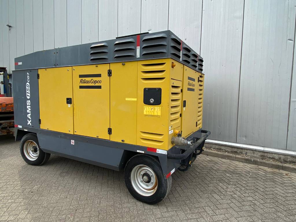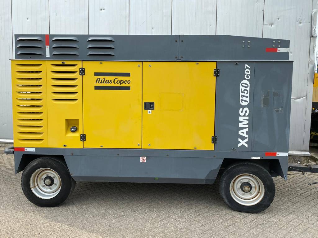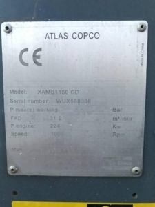 The Atlas Copco XAMS 1150 CD6 is an air compressor delivering 1150 CFM at 125-200 PSI, featuring a Tier-III/Stage-III compliant Caterpillar engine and designed for operation in harsh conditions.