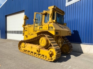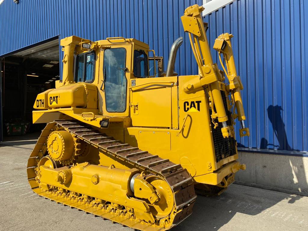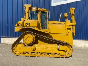 The Caterpillar D7H is a medium-sized track-type tractor (bulldozer) known for its durability and performance in heavy earthmoving and construction applications.