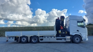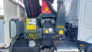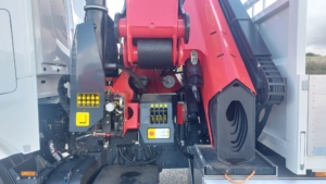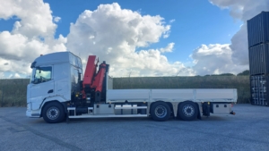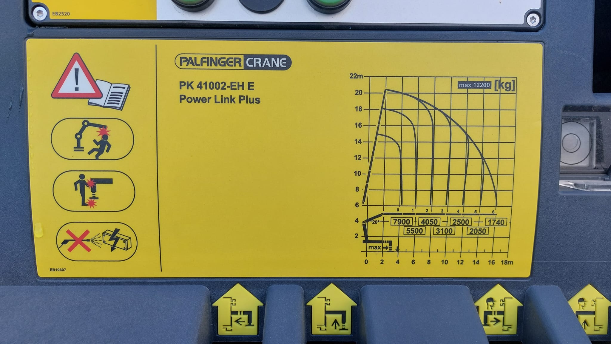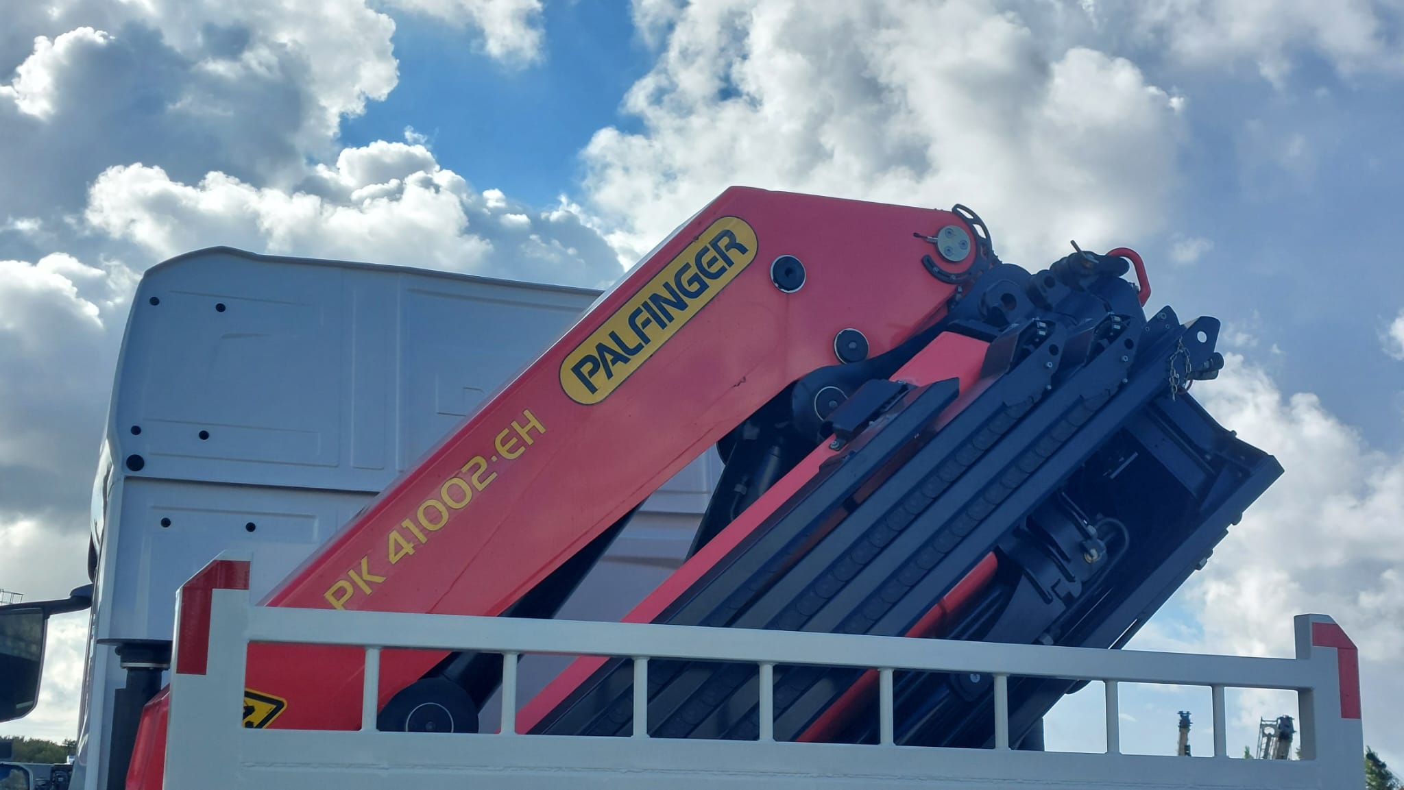 The DAF XF 480 FAN is a heavy-duty truck equipped with a Palfinger PK41002-EH E crane, making it suitable for demanding lifting and transport tasks.