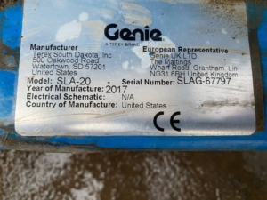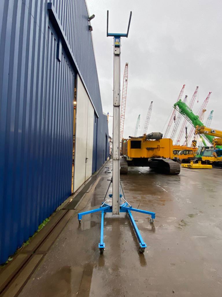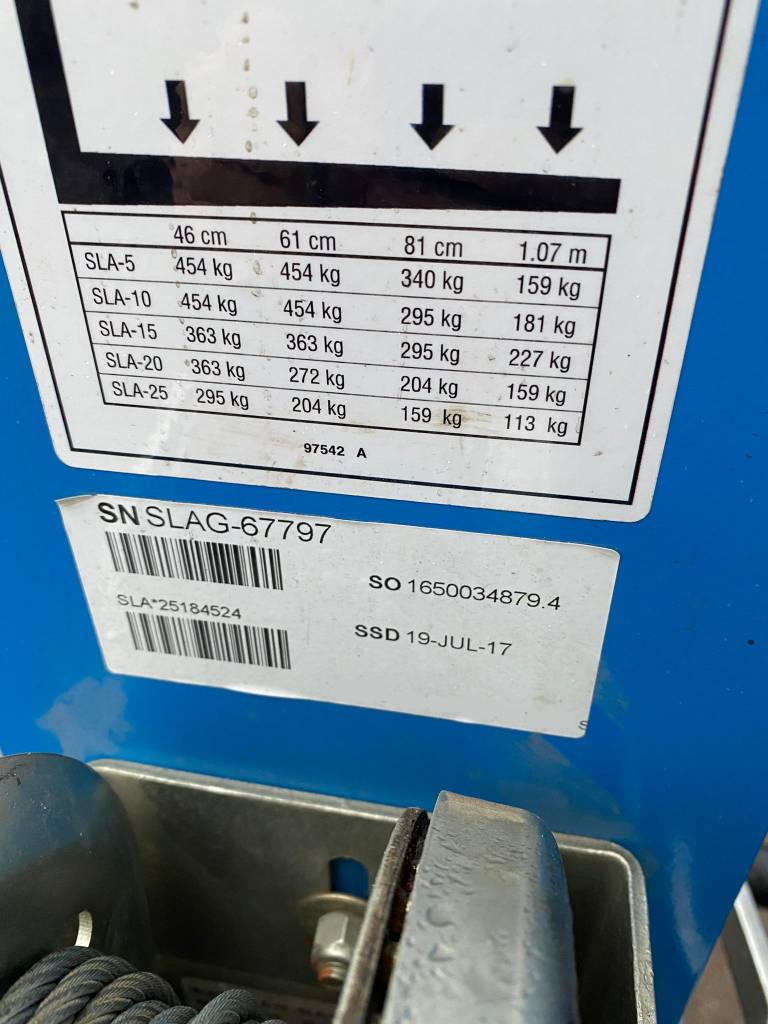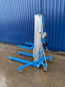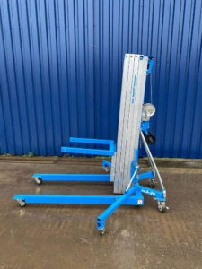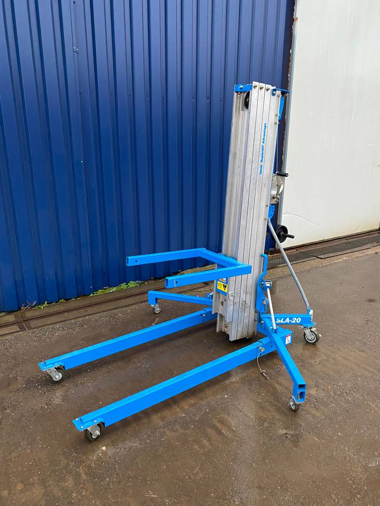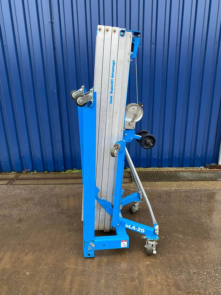 The Genie SLA-20 Superlift Advantage is a sturdy, manually operated push-around material lift that is easy to set up quickly without tools. It has a maximum platform height of 21 ft 2.5 in (6.46 m) and a capacity of 800 lb (363 kg).