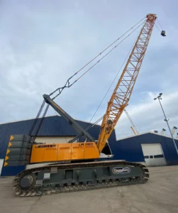 The Liebherr LR 1160 is a crawler crane with an operating weight that includes the basic machine, crawlers, two main winches, and a 17 m main boom. It has a lifting capacity for lifting operation only, corresponding to crane classification according to F.E.M.