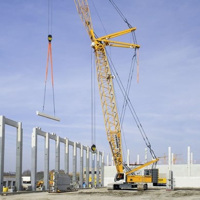 The Liebherr LR 1250 is a crawler crane known for its high lifting capacities and compact design, making it versatile for various construction sites.