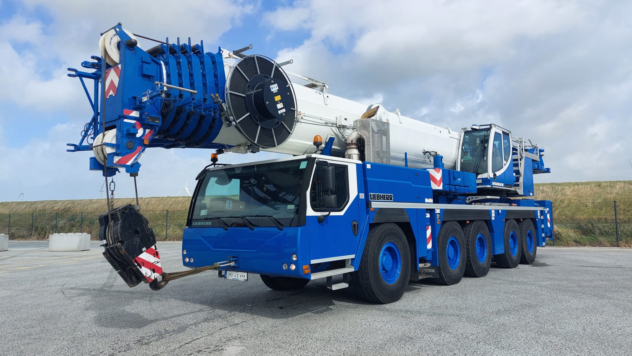 The Liebherr LTM 1160-5.2 is a mobile crane with a maximum load capacity of 180 t and a telescopic boom reaching up to 62 m. It is powered by a 400 kW 6-cylinder diesel engine and has 5 axles.