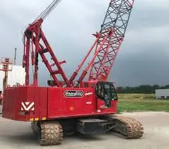 The Manitowoc 10000 is a crawler crane with a maximum lifting capacity of 100 US tons and a heavy lift boom ranging from 40 to 200 feet. It can also be configured with a 30-60 foot fixed jib.