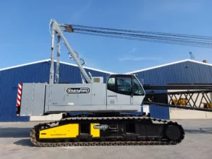 The Manitowoc 12000E is a 110 t (120 USt) lattice-boom crawler crane featuring a 247 kW (332 Hp) engine, designed for simple operation, easy setup, and reliability. It has a maximum boom + jib combination of 61 m + 21.3 m.