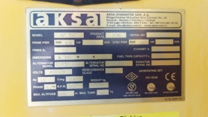The Perkins Aksa AP150 is a diesel generating set (generator) with a standby power of 150 kVA (120 kW) and 135 kVA (122.7 kW) prime power, powered by a Perkins 1106A-70TG1 engine.