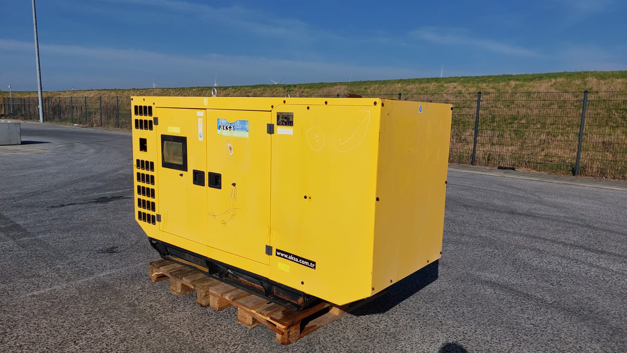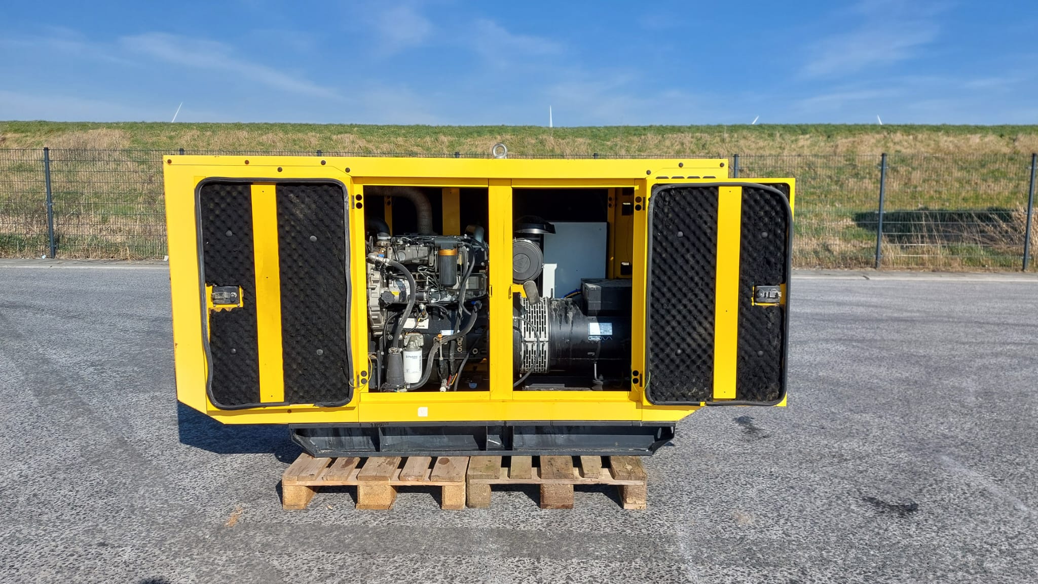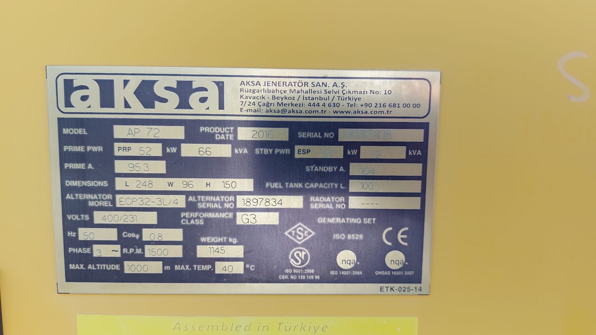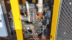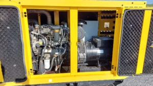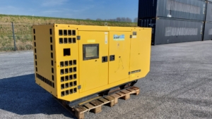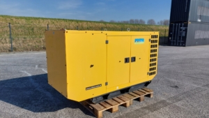 The Perkins Aksa AP72 is a reliable power generation system, typically a 3-phase, 50 Hz, 0.8 PF generator set, often featuring a bunded base frame with an integral fuel tank and an industrial exhaust silencer.