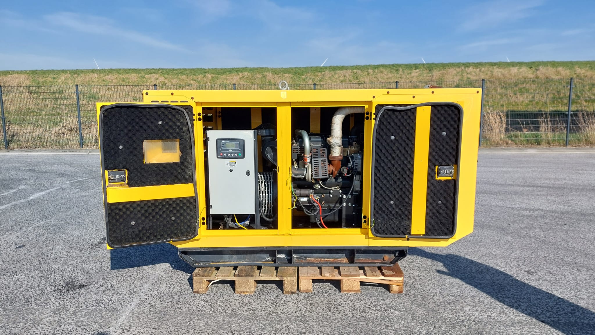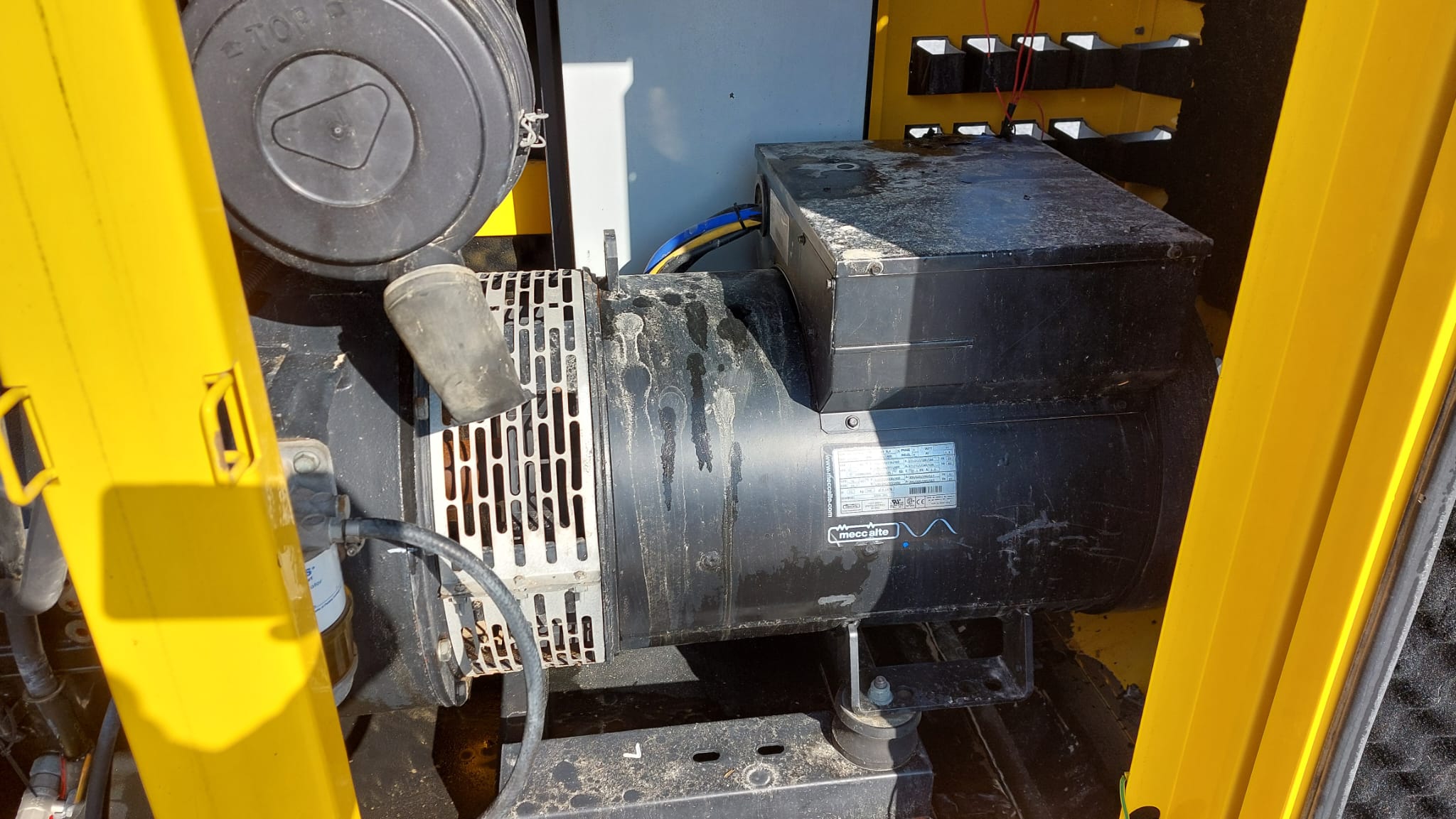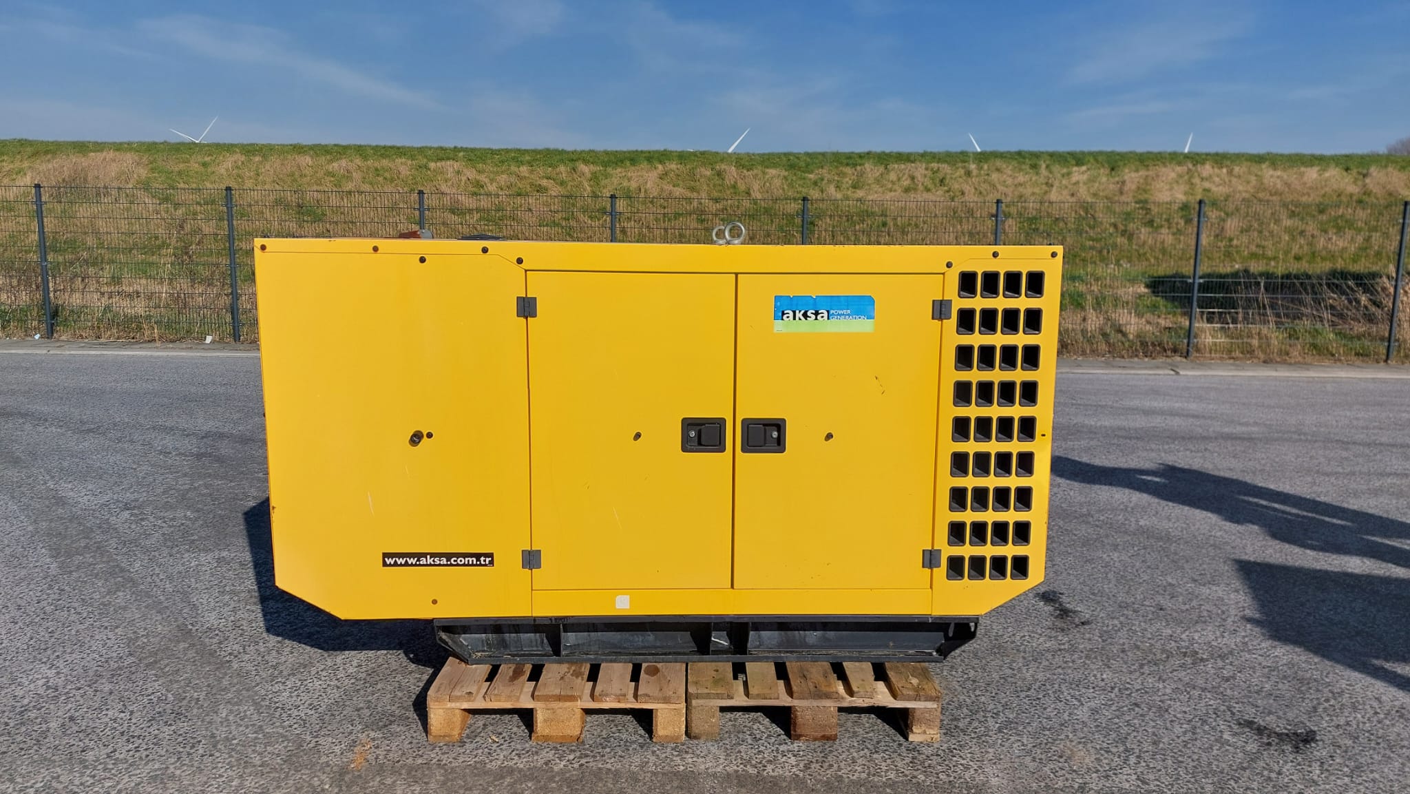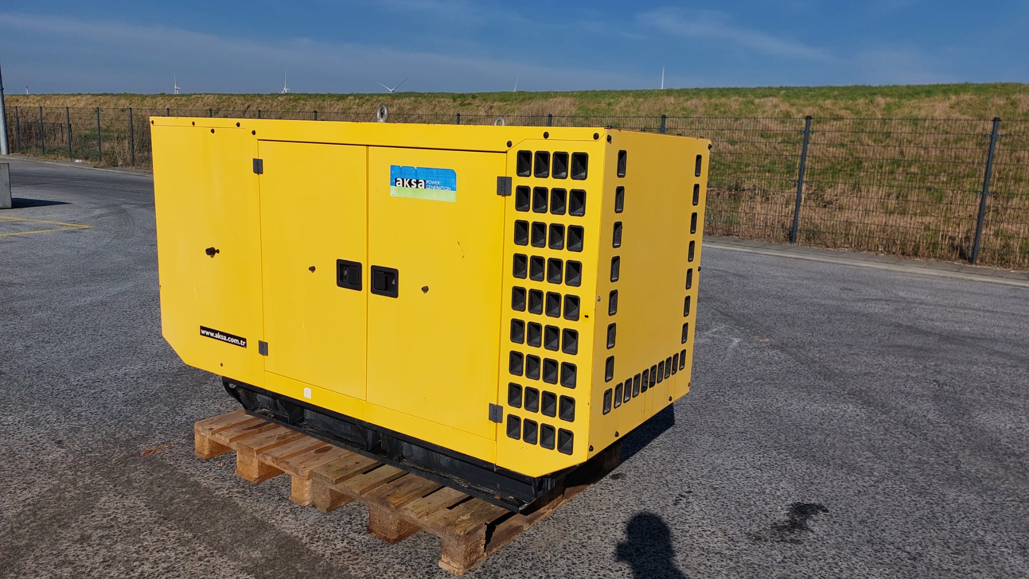 The Perkins Aksa AP72 is a reliable power generation system, typically a 3-phase, 50 Hz, 0.8 PF generator set, often featuring a bunded base frame with an integral fuel tank and an industrial exhaust silencer.