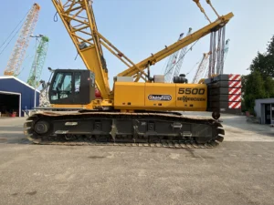 The Sennebogen 5500 is a crawler crane with a maximum load capacity of up to 180 to 200 tons.