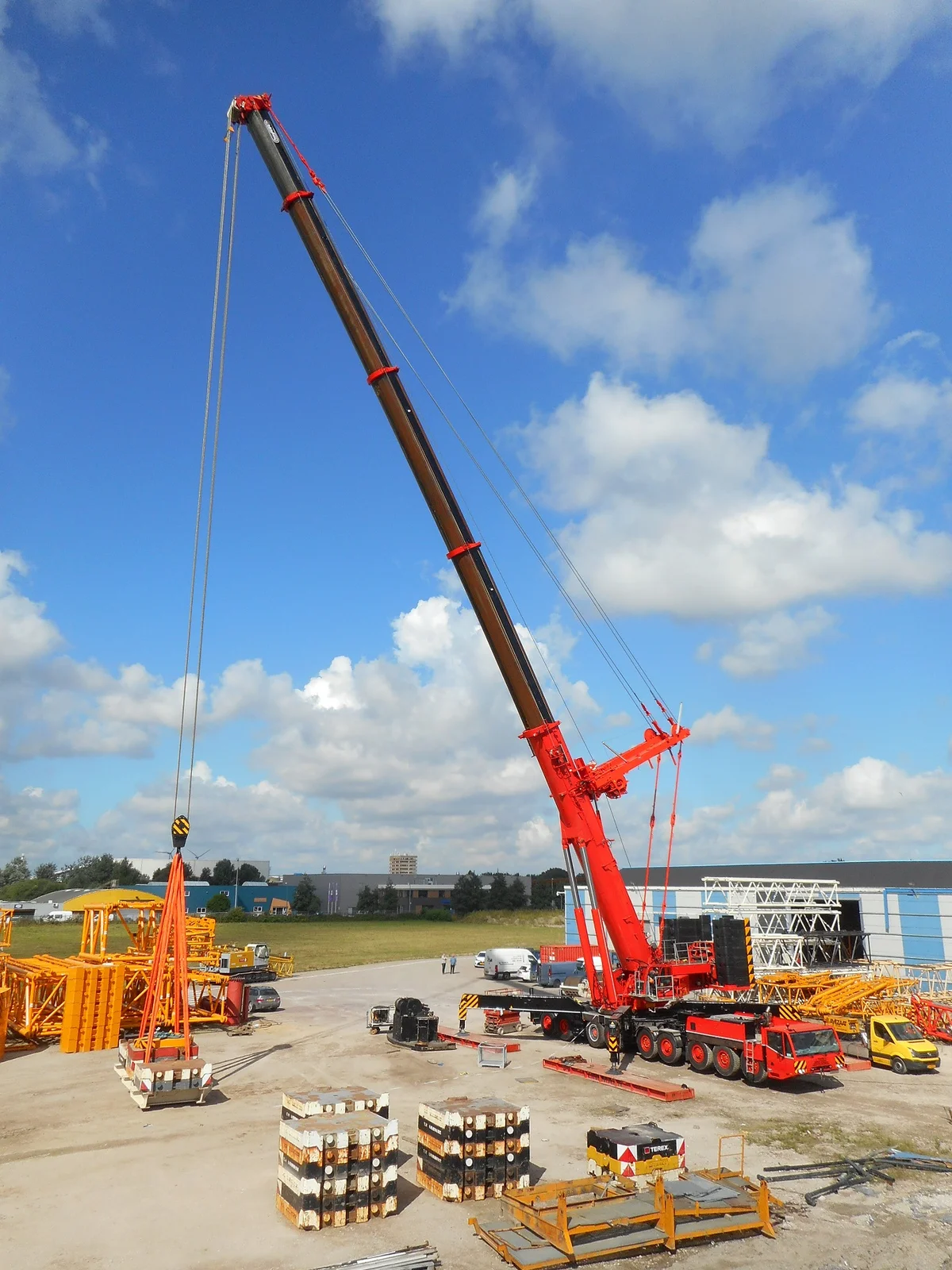 The Terex-Demag AC700 is a powerful all-terrain crane with a maximum lifting capacity of 700 to 800 tons, a main boom length up to 197 feet, and a maximum jib length around 328 feet.