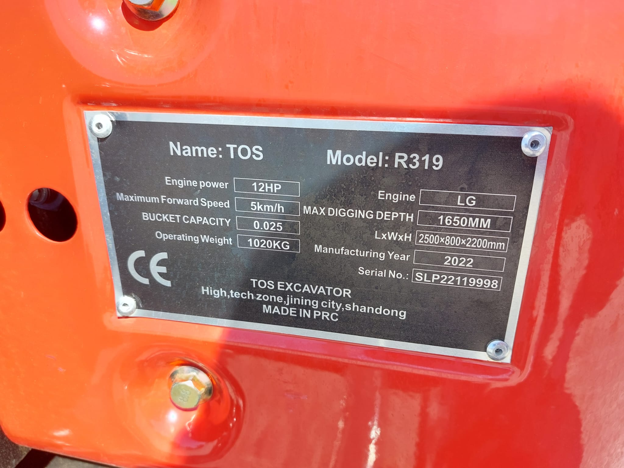 The TOS R319 (UNUSED) is likely a new or unused specialized piece of heavy machinery or equipment, possibly a type of crane or lifting device, given the context of the surrounding data.